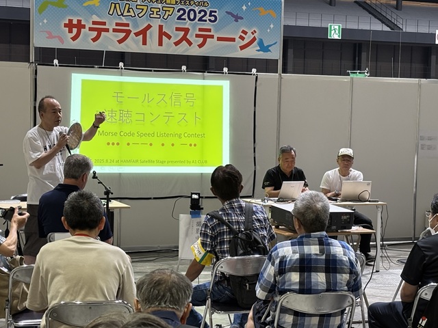 A サテライトステージ ★ステージ写真へジャンプ★ 8月24日(日) 11:00〜11:15 モールス信号速聴コンテスト ![]() (サテライトステージ予定表 外部リンク) |