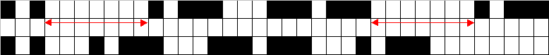 | 黒=マーク、白=スペース 上段:短点連続、下段:長点連続 |