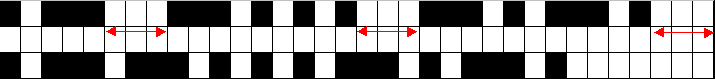 | 黒=マーク、白=スペース 上段:短点連続、下段:長点連続 |