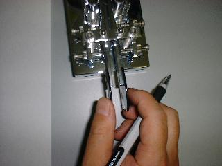 カチッと接点に振れてそのまま押さえているとトトトトトト…と短点の連続が発生しますから、どのタイミングで離せばよいかは、繰りかえしやってみて体得するしかありません。